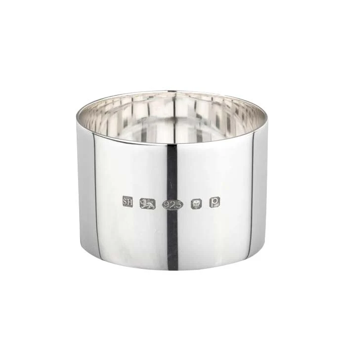 Handcrafted sterling silver napkin ring, weighing 28g and measuring 30mm high × 45mm wide.