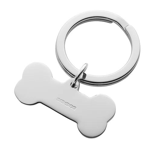 Hallmarked sterling silver dog bone tag, suitable as a collar name tag or keyring.
