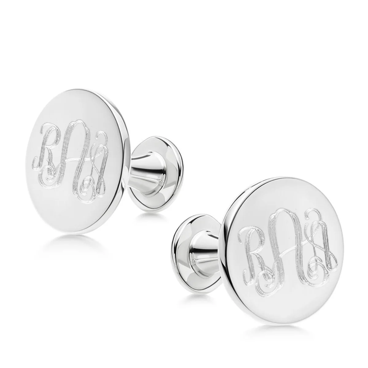 Handcrafted round sterling silver cufflinks with an 18mm diameter face and a solid cast back for secure fastening.