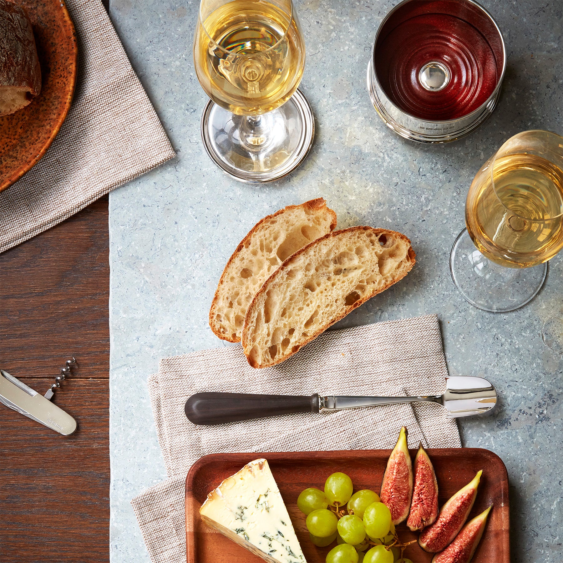Handmade sterling silver scoop with polished dark wood handle for serving Stilton and other soft cheeses.